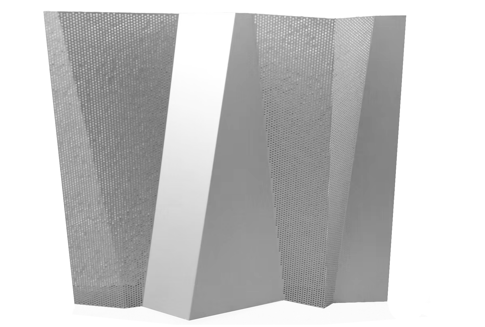 Dieser Effekt entsteht durch vertikal angeordnete Lamellen, deren Seitenflächen unterschiedlich gefärbt sind. Durch die Geschwindigkeit der Fahrzeuge entsteht eine Art visuelles Kippen – Architektur wird zur kinetischen Erfahrung.