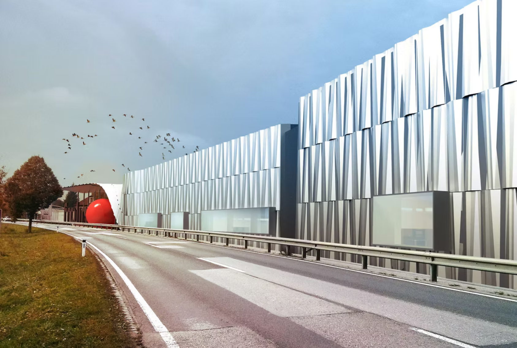 Das Firmengebäude der Heizungs- und Installationsfirma Fröling begleitet über eine beträchtliche Länge eine stark befahrene Landstraße. Es wird nicht fußläufig, sondern fast ausschließlich aus der Bewegung des vorbeifahrenden Verkehrs wahrgenommen. Genau hier setzte der architektonische Ansatz an: eine Fassade, die erst im Vorbeifahren ihre volle Wirkung entfaltet.